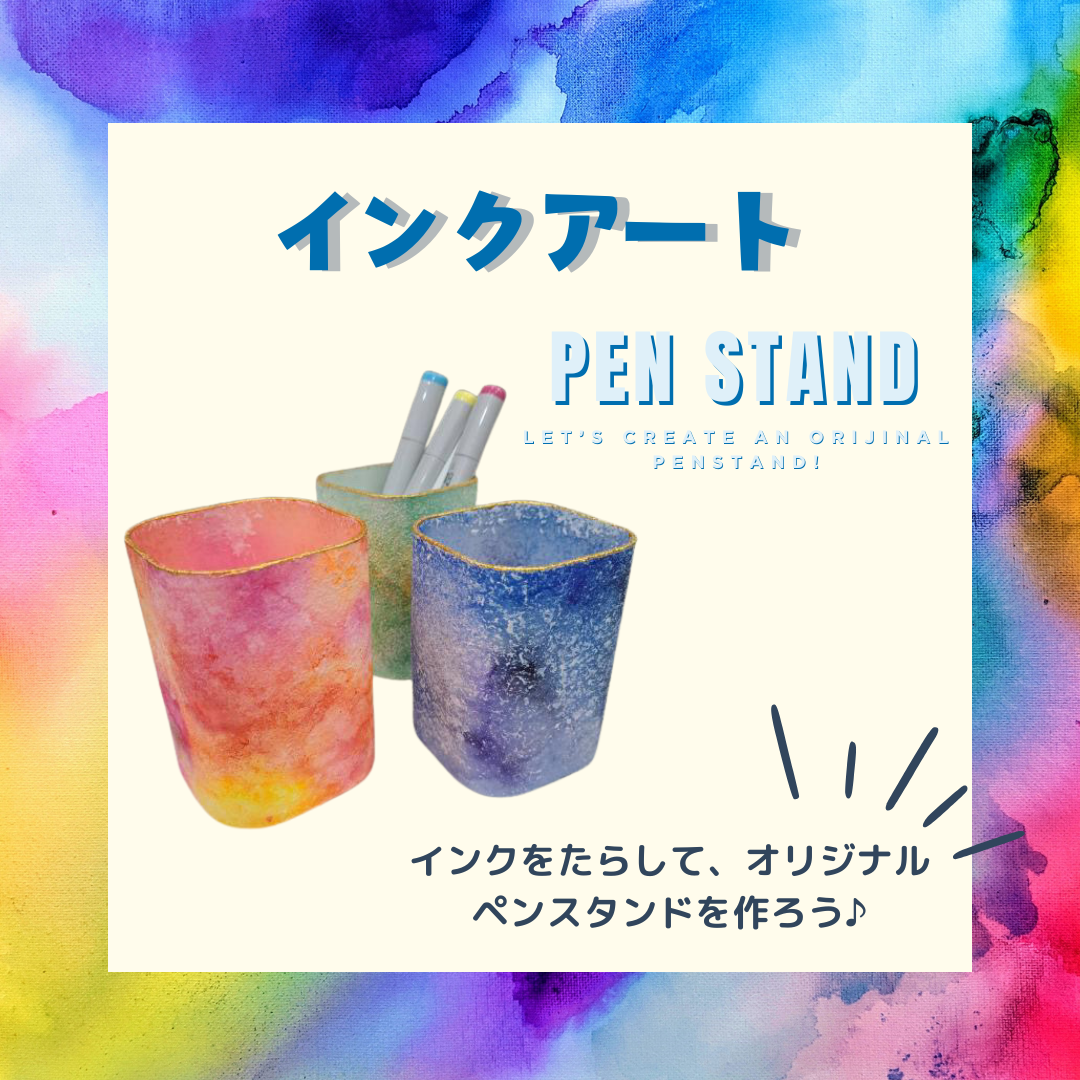 ペンスタンドをアルコールインクでカラフルに変身させよう♪ 誰でも簡単に、自分だけのペンスタンドが作れるよ! 【所用時間 45分】 【制作物:ペンスタンド】