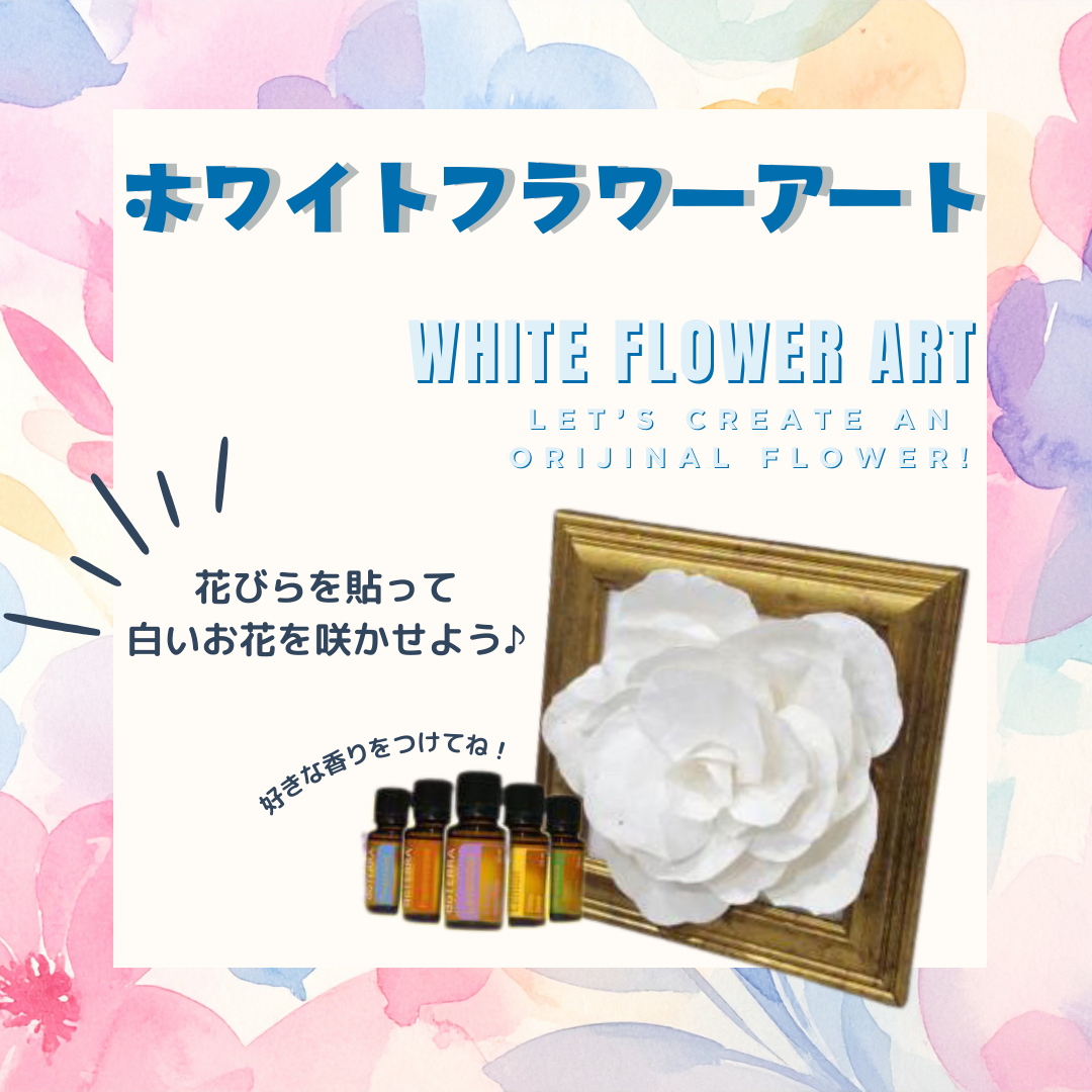 花びらを貼り付けて、白いお花を咲かせよう♪ 花びらをペタペタ貼るだけの、簡単でワクワクするアート! 完成したお花にアロマオイルをポタリとたらせば良い香りのお花に大変身! 【所用時間 45分】 【制作物:アートフラワー】
